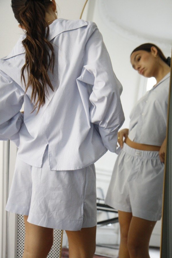 Confeccionada en un suave poplin. El diseño la hace perfecta para cualquier ocasión, ya sea informal o formal. Combinada en blanco y celeste, esta camisa es ideal para crear un look moderno y refinado.